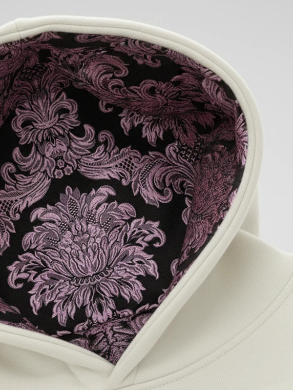 Hoodie oversize que transforma la tradición en expresión contemporánea. Su capucha revela una tela damasco tejida en un telar valenciano, donde la maestría tejedora perdura como un arte reservado a quienes saben distinguir la excelencia. La fuerza cultural del motivo ornamental convive con la pureza del algodón premium en una pieza que se convierte en signo de identidad: una prenda con alma, creada para vestir aquello que nos hace únicos y nos conecta con un legado que merece ser llevado cada día, edición limitada a 50 piezas.