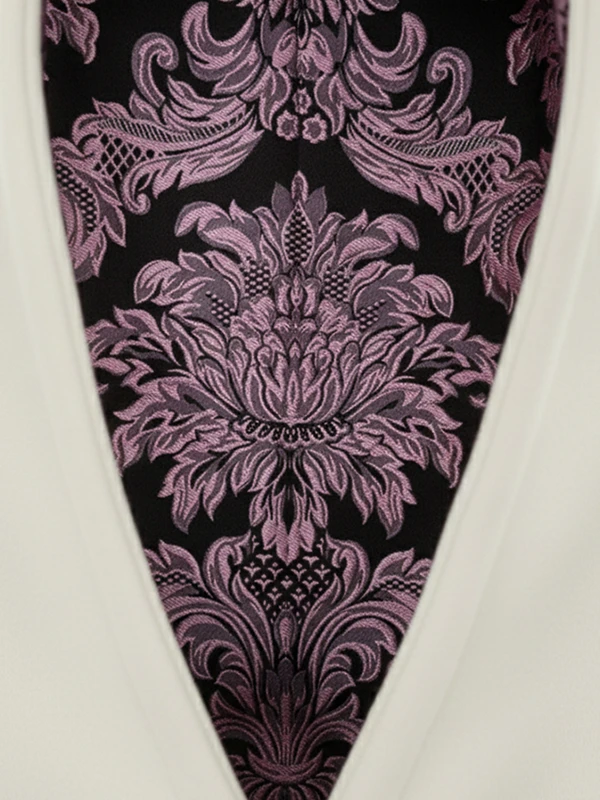 La capucha revela un interior forrado con damasco marrón y rosa, tejido en un telar valenciano por maestros que custodian un arte vivo y accesible. Cada hilo, cada relieve, cada contraste entre la pureza del blanco crema y la calidez del damasco, es una declaración silenciosa de distinción eterna.
